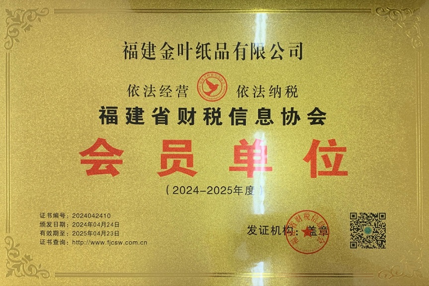 福建金葉紙品有限公司成為福建省財稅信息協會會員單位